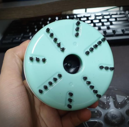 가운데 전동모터로 흡입해서 먼지나, 이물질들을 모아줘요.