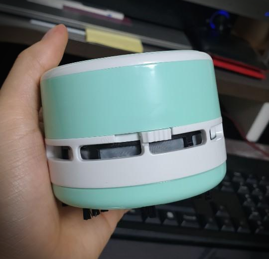 "데스크 청소기"로 간단하게 청소하고 쓰레기 통에 버릴 수 있으니 편하더라고요.ㅋㅋ