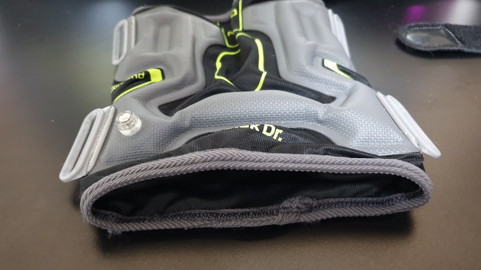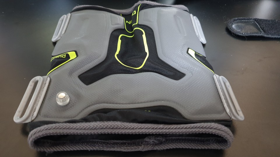 첫 번째로, 쫀쫀한 끈과 보호대가 무릎을 짱짱하게 고정해줍니다.