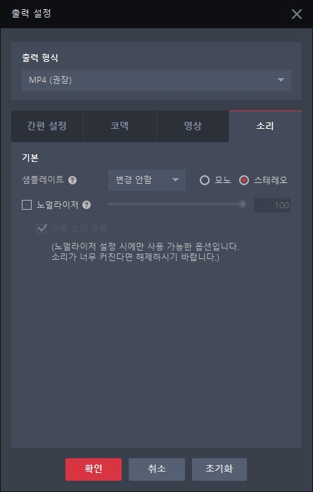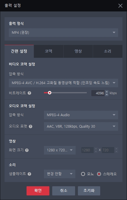 총 4가지 설정이 있으며 간편 설정으로 쉽게 설정할 수 있습니다.