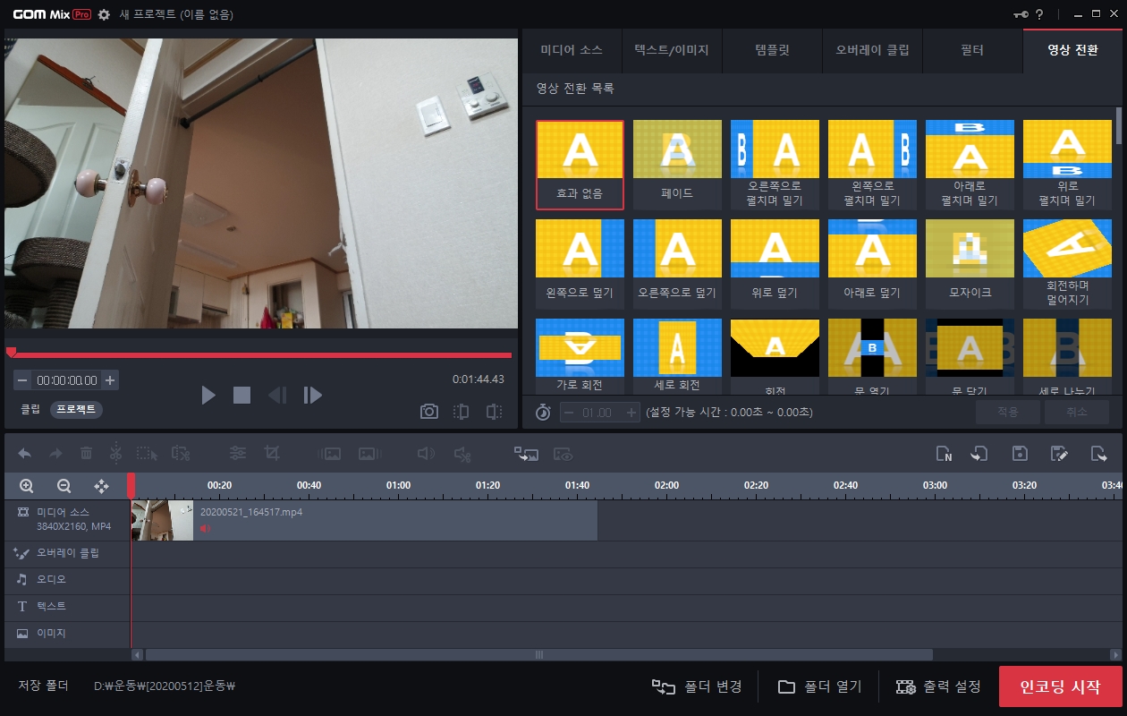 예를 들어서 같은 시간대 영상 속에 영상을 넣는다던지, 노래 속에 말소리를 겹치게 올려 넣는 부분이 없으므로 한 가지로만 작업 후 인코딩 작업을 통해서 다시 파일을 올려서 작업하는 번거로움이 있습니다. 이런 작업이 번거롭다면 익숙 해진 후 전문적인 편집 프로그램으로 갈아타시는 걸 추천드립니다.
