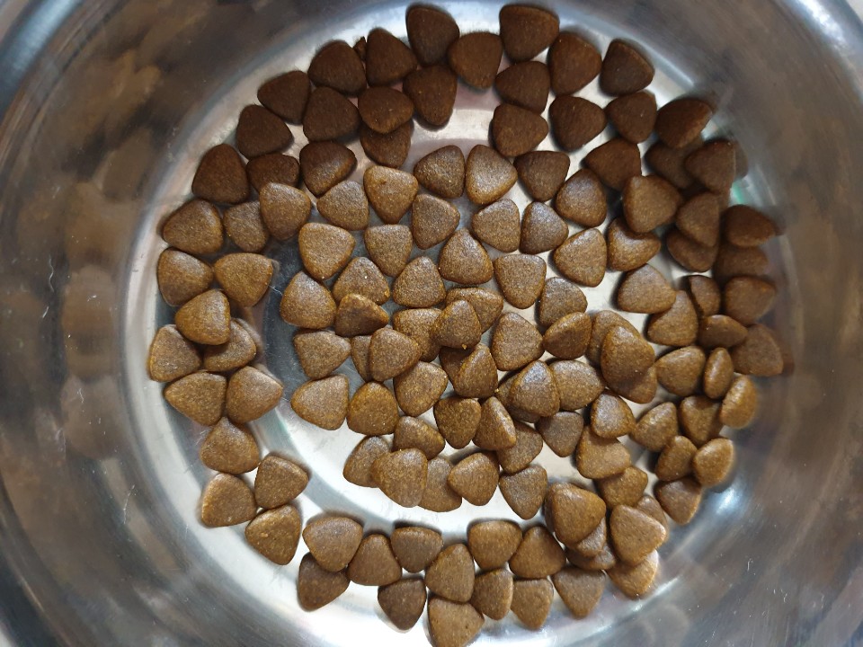 기존에 사용했던 사료는 알갱이가 굵직해서 항상 1/5 정도 깨지고 먹지도 않아서 작은 사료를 선택했어요.